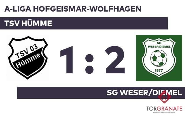 Die erste Halbzeit endete ohne ein zählbares Ereignis für beide Mannschaften. In der 53. Minute verwandelte Jan Baruschka dann einen Elfmeter für die SG Weser/Diemel zum 1:0. Fabian Klinter war es, der in der 70. Minute das Spielgerät im Tor der Gäste unterbrachte. Das Spiel neigte sich seinem Ende entgegen, als Noah Budalic einen Treffer für die SG Weser/Diemel im Ärmel hatte (84.). Am Ende nahm die SG Weser/Diemel beim TSV Hümme einen Auswärtssieg mit.