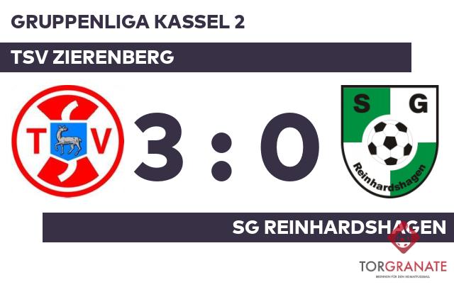 Die SG Reinhardshagen geriet schon in der neunten Minute in Rückstand, als Robin Möller das schnelle 1:0 für den TSV Zierenberg erzielte. Zur Pause war der TSV Zierenberg im Fahrwasser und verbuchte eine knappe Führung. Zum Seitenwechsel ersetzte Jonas Kampf von der SG Reinhardshagen seinen Teamkameraden Christopher Hayn. Der TSV Zierenberg baute den Vorsprung mit der Hilfe des Gegners weiter aus: 2:0 für den Gastgeber durch ein Eigentor der SG Reinhardshagen in der 52. Minute. Ante Grgic gelang in den Schlussminuten noch ein weiterer Treffer für den TSV Zierenberg (85.). Am Schluss schlug der TSV Zierenberg die SG Reinhardshagen mit 3:0.