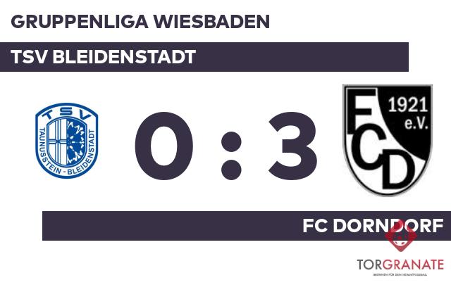 In der 20. Minute verwandelte Florian Kröner dann einen Elfmeter für den FCD zum 1:0. Die Dorndorfer führten zur Halbzeit knapp mit einem Tor Vorsprung. Mit einem Wechsel – Dominik Altenhofen kam für Tim Flemming – startete der TSV Bleidenstadt in Durchgang zwei. Fabio Dahlem versenkte die Kugel zum 2:0 (76.). In der 83. Minute stellte die Dorndorf personell um: Per Doppelwechsel kamen Franjo Tuzlak und Ricardo Bartoschek auf den Platz und ersetzten Ajmir Koochi und Dahlem. Thomas Wilhelmy stellte wenige Minuten vor dem Schlusspfiff den Stand von 3:0 für die Gäste her (90.). Ein starker Auftritt ermöglichte dem Tabellenprimus am Sonntag einen ungefährdeten Erfolg gegen den TSV Bleidenstadt.