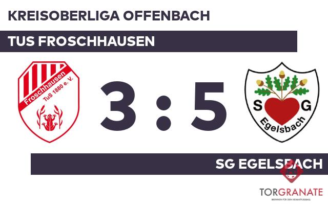 Auf die vermeintliche Siegerstraße brachte Sascha Hark sein Team in der elften Minute. Die TUS Froschhausen bejubelte noch das letzte Erfolgserlebnis, als Jonas Steenken für den Ausgleich sorgte (13.). Nach nur 30 Minuten verließ Mohammad Ahmadi von der SG Egelsbach das Feld, Len Joel Ehrt kam in die Partie. Zur Halbzeit war die Partie noch vollkommen offen. Remis lautete das Zwischenresultat. In Durchgang zwei lief Timo Stier anstelle von Oliver Bergmann für die TUS Froschhausen auf. In der 57. Minute brachte Mate Dujmovic den Ball im Netz des Heimteams unter. Wer glaubte, das Schlusslicht sei geschockt, irrte. Jannis Beck machte unmittelbar nach dem Rückschlag den Ausgleich perfekt (63.). Der Treffer zum 3:2 sicherte der SG Egelsbach nicht nur die Führung – es war auch bereits der zweite von Steenken in diesem Spiel (67.). Beck ließ sich in der 78. Minute nicht zweimal bitten und verwertete zum 3:3 für die TUS Froschhausen. Durchsetzungsstark zeigte sich die SG Egelsbach, als Torben Suess (82.) und Steenken (90.) schnell nacheinander im gegnerischen Strafraum zuschlugen. Am Schluss siegte die SG Egelsbach gegen die TUS Froschhausen.