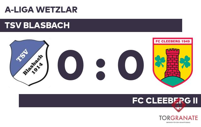 Nach den ersten 45 Minuten ging es für den TSV Blasbach und den FC Cleeberg II ohne Torerfolg in die Kabinen. Beim TSV Blasbach kam zu Beginn der zweiten Hälfte Marcel Schlicht für Yannick Rauber in die Partie. Am Ende stand ein Teilerfolg für beide Mannschaften. Die Heimmannschaft und der FC Cleeberg II spielten unentschieden.