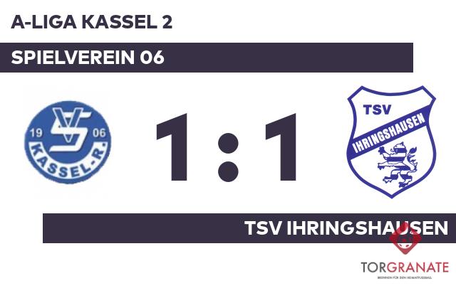 Auf die vermeintliche Siegerstraße brachte Romario Taloi sein Team in der 14. Minute. Zur Pause wusste der Spielverein 06 eine hauchdünne Führung auf der Habenseite. In der Pause stellte der TSV Ihringshausen personell um: Per Doppelwechsel kamen Natnael Haile und Emre Kocer auf den Platz und ersetzten Kevin Ludwig und Jan Philip Luchterhandt. Mit einem Wechsel – Said Mujtabe Hossaini kam für Francesco Vasami – startete der Spielverein 06 in Durchgang zwei. In der 72. Minute erzielte Christian Eberhardt das 1:1 für den TSV Ihringshausen. Die 1:1-Punkteteilung war letztlich besiegelt, als Schiedsrichter Kevin Scherf (Volkmarsen) die Partie nach 90 Minuten abpfiff.