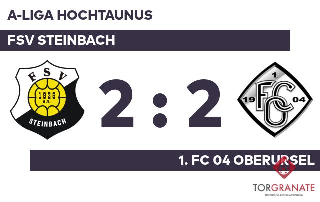 Auf die vermeintliche Siegerstraße brachte Patrick Gross sein Team in der fünften Minute. In der 15. Minute erzielte Lasse Finn Boermans das 1:1 für den 1. FC 04 Oberursel. Beim FSV Steinbach kam Diogo Miguel Freitas Barbosa für Lukas Gießen ins Spiel und sollte fortan für neue Impulse sorgen (24.). Kurz vor dem Pfiff zur Halbzeit machte Mika Werner das 2:1 zugunsten des 1. FC 04 Oberursel (40.). Mund abputzen und weitermachen: Unter diesem Motto stand der Ausgleich, den Freitas Barbosa bereits wenig später besorgte (45.). Eine Aussage darüber, wer am Ende die Nase vorn haben würde, war nach dem Abpfiff der ersten Halbzeit noch nicht zu treffen. Es ging mit einem Gleichstand in die Kabinen. Zum Seitenwechsel ersetzte Ali Mohammad vom FSV Steinbach seinen Teamkameraden Patrick Gießen. Schließlich bleibt folgendes Fazit: Während Durchgang eins einem Wechselbad der Gefühle gleichkam, war die zweite Hälfte dagegen ärmer an Höhepunkten und es fielen keine weiteren Treffer. Am Ende gingen die Teams mit einer Punkteteilung auseinander.