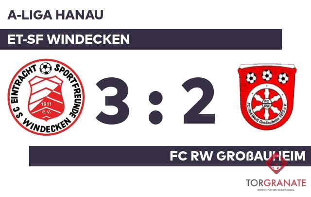 Beide Mannschaften starteten vorsichtig in das Spiel. Zu Torchancen gelangte in der Anfangsphase keine von beiden. Für das erste Tor sorgte Kai Fischer. In der 22. Minute traf der Spieler der ET-SF Windecken ins Schwarze. Nach nur 25 Minuten verließ Marcel Bernecker vom FC RW Großauheim das Feld, Calvin Klein kam in die Partie. Die Gäste glichen bis zum Halbzeitpfiff nicht mehr aus. Schließlich schickte Referee Luka Daniel Simic (Mühlheim am Main) beide Teams mit der knappen Führung für die ET-SF Windecken in die Kabinen. Fischer schnürte mit seinem zweiten Treffer einen Doppelpack und brachte seine Mannschaft auf die Siegerstraße (56.). Kevin Shaffer verkürzte für den FC RW Großauheim später in der 66. Minute auf 1:2. Murat Seherli glich nur wenig später für den FC RW Großauheim aus (69.). Der Schlusspfiff war zum Greifen nah, als Florian Metz noch einen Treffer parat hatte (90.). Schließlich sprang für die ET-SF Windecken gegen den FC RW Großauheim ein Dreier heraus.