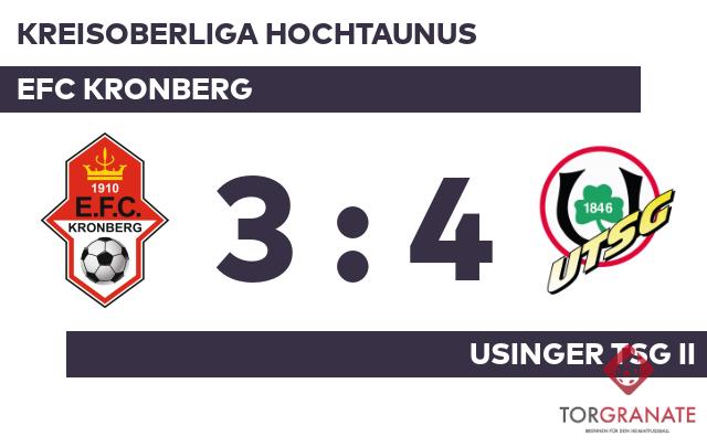 Benito Gonzalez Torres beförderte das Leder zum 1:0 des Gasts in die Maschen (18.). Hueseyin Durak versenkte die Kugel zum 2:0 für die Usinger TSG II (22.). Ehe der Schiedsrichter Frederik Angermaier (Bad Camberg) die Akteure zur Pause bat, erzielte Antonio Marino Larruscain aufseiten des EFC Kronberg das 1:2 (43.). Ein Tor auf Seiten der Usinger TSG II machte zur Pause den Unterschied zwischen den beiden Mannschaften aus. Mit einem Wechsel – Krzysztof Mernberger kam für Alexander Dybeck – startete der EFC Kronberg in Durchgang zwei. Leon Hintzmann erhöhte für die Usinger TSG II auf 3:1 (68.). Mit einem Eigentor kam der EFC Kronberg noch einmal ran (76.). Für das dritte Tor der Heimmannschaft war Marcel Wuerges verantwortlich, der in der 90. Minute das 3:3 besorgte. Paul Brockoetter stellte für die Usinger TSG II im Schlussakt den Führungstreffer sicher (90.). Nach der Beendigung des Spiels durch Referee Frederik Angermaier (Bad Camberg) feierte die Usinger TSG II einen dreifachen Punktgewinn gegen den EFC Kronberg.