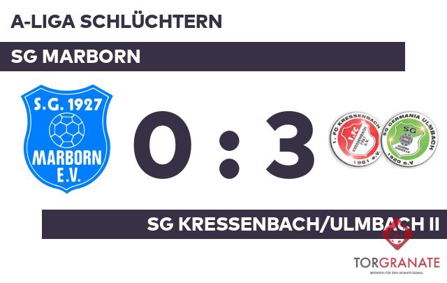 Nach den ersten 45 Minuten ging es für die SG Marborn und die SG KU II ohne Torerfolg in die Kabinen. In der Halbzeitpause veränderte die SG Kressenbach/Ulmbach II die Aufstellung in großem Maße, sodass Lennard Betz, Noah Andre Fehl und Yannick Herber für Niklas Wolf, Alexander Theodor und Fehl weiterspielten. Herber brachte sein Team in der 52. Minute nach vorn. Die SG Marborn stellte in der 57. Minute personell um: Johannes Gaul ersetzte Djawed Schersadeh und damit ein nomineller Verteidiger den anderen. Betz brachte den Ball zum 2:0 zugunsten der SG KU II über die Linie (81.). In der 86. Minute verwandelte Lukas Mackenroth dann einen Elfmeter für die Spielgemeinschaft zum 3:0. Am Ende schlug die SG Kressenbach/Ulmbach II die SG Marborn auswärts.