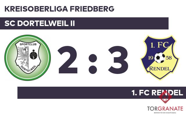 Zu Beginn der Begegnung neutralisierten sich beide Mannschaften so weit, dass sich keine von ihnen eine Torchance herausspielte. Marco Langer brachte den SC Dortelweil II in der 16. Minute ins Hintertreffen. Joshua Bell ließ sich in der 32. Minute nicht zweimal bitten und verwertete zum 1:1 für die Gastgeber. Zum Seitenwechsel hatte keine Mannschaft die Oberhand gewonnen. Unentschieden lautete der Zwischenstand. Levent Oezbakir versenkte die Kugel zum 2:1 (70.). Batuhan Yigin schockte den SC Dortelweil II und drehte die Partie mit seinem Doppelpack für den 1. FC Rendel (71./82.). Mit Ablauf der Spielzeit schlug der 1. FC Rendel den SC Dortelweil II 3:2.