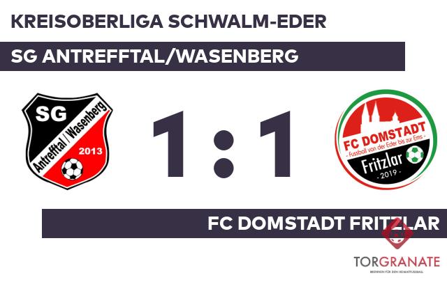 Andre Johannes Strippel brachte den Ball zum 1:0 zugunsten des FC Domstadt Fritzlar über die Linie (20.). Antrefftal/Wasenberg brauchte den Ausgleich, aber die Führung des FC Domstadt Fritzlar hatte bis zur Pause Bestand. Der FC Domstadt Fritzlar musste den Treffer von Matthias Quehl zum 1:1 hinnehmen (75.). Letzten Endes wurde im Aufeinandertreffen der SG Antrefftal/Wasenberg mit dem FC Domstadt Fritzlar kein Sieger ermittelt.