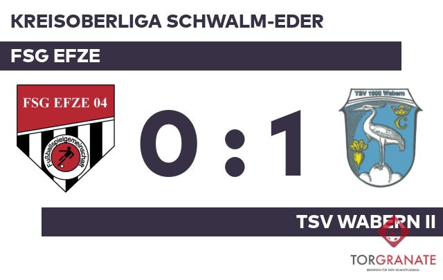 Die erste Halbzeit endete ohne ein zählbares Ereignis für beide Mannschaften. Gleich drei Wechsel nahm der TSV Wabern II in der 75. Minute vor. Lennart Klinge, Fabio da Silva und Stephan Bergmann verließen das Feld für Christoph Michel, Nick Breiter und Julian Richter. Dank eines Treffers von Marius Konrad in der Schlussphase (90.) gelang es den Gästen, die Führung einzufahren. Schließlich sprang für den TSV Wabern II gegen die FSG Efze ein Dreier heraus.