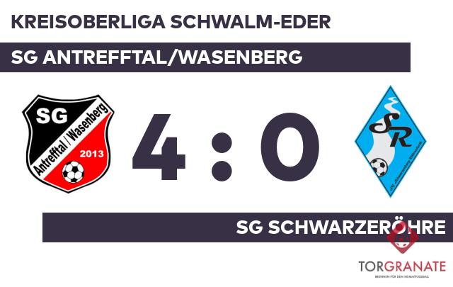 Alexander Reidt brachte das Heimteam in der 35. Minute in Front. Kurz vor dem Pfiff zur Halbzeit machte Marcel Reitz das 2:0 zugunsten der SG Antrefftal/Wasenberg (40.). Mit der Führung für Antrefftal/Wasenberg ging es in die Halbzeitpause. Johannes Ermel baute den Vorsprung der SG Antrefftal/Wasenberg in der 87. Minute aus. Ehe der Abpfiff ertönte, war es Maximilian Steppan, der das 4:0 aus Sicht von Antrefftal/Wasenberg perfekt machte (88.). Am Ende kam die SG Antrefftal/Wasenberg gegen die SG SchwarzeRöhre zu einem verdienten Sieg.