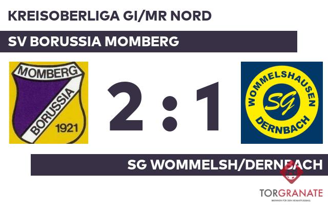 Torlos ging es nach dem Halbzeitpfiff in die Kabinen. Jan Niklas Schaefer schoss in der 72. Minute vom Elfmeterpunkt das erste Tor des Spiels für den SV Borussia Momberg. Fabian Sack versenkte die Kugel zum 2:0 für die Gastgeber (74.) Kurz vor Ultimo war noch Yanik Berberich zur Stelle und zeichnete für das erste Tor des Wommelsh/Dernbach verantwortlich (90.). Am Schluss siegte der SV Borussia Momberg gegen die Gäste.