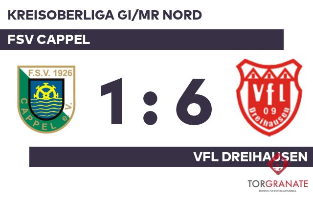 Der FSV Cappel geriet schon in der fünften Minute in Rückstand, als Timo Lorch das schnelle 1:0 für den VfL Dreihausen erzielte. Kurz vor dem Pausenpfiff erhöhte Alexander Halle den Vorsprung des VfL Dreihausen auf 2:0 (40.). Es waren die Gäste, die zur Pause eine Führung ihr Eigen nannten. Der VfL Dreihausen musste den Treffer von Athanasios Karamitros zum 1:2 hinnehmen (63.). Rene Preis beförderte das Leder zum 3:1 des Gasts über die Linie (71.). Wenig später kamen Lukas Graf und Elkhalil Sahili per Doppelwechsel für Leon Jacobi und Anton Jencik auf Seiten des VfL Dreihausen ins Match (74.). Halle beseitigte mit seinen Toren (85./90.) die letzten Zweifel am Sieg des VfL Dreihausen. Ehe der Abpfiff ertönte, war es Preis, der das 6:1 aus Sicht des VfL Dreihausen perfekt machte (90.). Der VfL Dreihausen überrannte den FSV Cappel förmlich mit sechs Toren und fährt so mit einem verdienten Sieg in der Tasche nach Hause.