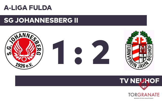 Tim Bachmann brachte die SG Johannesberg II in der 37. Minute in Front. Die SGJ führte zur Halbzeit knapp mit einem Tor Vorsprung. In der 80. Minute erzielte der TV Neuhof den Ausgleich. Der TV witterte seine Chance und schoss den Ball zum 2:1 ein (84.). Die 1:2-Heimniederlage der SG Johannesberg II war Realität, als der Schiedsrichter die Partie letztendlich abpfiff.