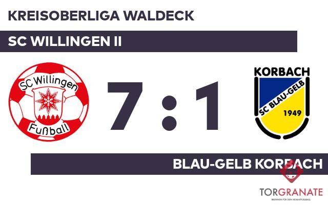 Meron Habtay glänzte an diesem Tag besonders. Er traf im Doppelpack für das Heimteam (21./38.). Zum psychologisch ungünstigen Zeitpunkt vor der Halbzeit (42.) schoss Jan Hendrik Keindl einen weiteren Treffer für den SC Willingen II. Bevor es in die Pause ging, hatte Lukas Verhöf noch das 4:0 des SC Willingen II parat (45.). Nach dem souveränen Auftreten des SC Willingen II überraschte es kaum einen Zuschauer, dass zur Pause eine deutliche Führung stand. Durch Treffer von Tim Albrecht (52.), Habtay (55.) und Eric Kroll (56.) zog der SC Willingen II uneinholbar davon. In der Schlussphase gelang Armanc Yagmur noch der Ehrentreffer für Blau-Gelb Korbach (82.). Mit dem Spielende fuhr der SC Willingen II einen Kantersieg ein. Bereits vor dem Seitenwechsel war für den Gast klar, dass gegen den SC Willingen II heute kein Kraut gewachsen war.