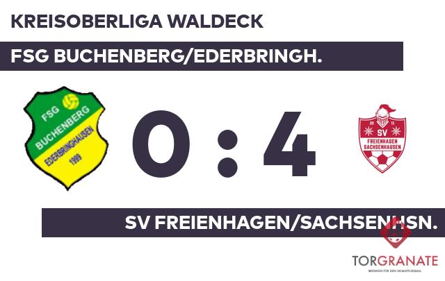 Ein frühes Ende hatte das Spiel für Ionut-Georgian Lixandru vom Tabellenletzten, der in der 15. Minute vom Platz musste und von Philipp Dierich ersetzt wurde. In der Anfangsphase schaffte es keines der beiden Teams, sich eine Chance zu erarbeiten. Albert Reimer nutzte die Chance für die SV Freienhagen/Sachsenhsn. und beförderte in der 20. Minute das Leder zum 1:0 ins Netz. Um den entscheidenden Deut besser war zur Pause der Gast, sodass es mit einer dünnen Führung in die Kabine ging. In Durchgang zwei lief Fabian Knoche anstelle von Luca Gross für Buchenb./Ederbr. auf. Die nächsten beiden Treffer waren einem Mann vorbehalten: Tom Wehowsky schnürte einen Doppelpack (56./82.), sodass Freienh./Sachsenh. fortan mit 3:0 führte. Lars Dezimbalka gelang in den Schlussminuten noch ein weiterer Treffer für die SV Freienhagen/Sachsenhsn. (87.). Mit Ablauf der Spielzeit schlug Freienh./Sachsenh. die FSG Buchenberg/Ederbringh. 4:0.
