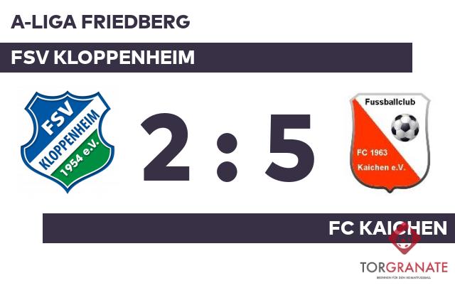 Der FC Kaichen erwischte einen Blitzstart ins Spiel. Philipp Kühn traf in der dritten Minute zur frühen Führung. Mund abputzen und weitermachen: Unter diesem Motto stand der Ausgleich, den Dennis Trageser bereits wenig später besorgte (5.). Gianluca Campagna verwandelte in der 37. Minute einen Elfmeter und brachte dem FSV Kloppenheim die 2:1-Führung. Zur Pause wussten die Gastgeber eine hauchdünne Führung auf der Habenseite. Marcel Kopp trug sich in der 46. Spielminute in die Torschützenliste ein. Timon Wolf versenkte die Kugel zum 3:2 (67.). In Durchgang zwei lief Alexander Clemens anstelle von Dominik Killinger für den FC Kaichen auf. Ab der 62. Minute bereicherte der für k.A. k.A. eingewechselte Marco Weber die Gäste im Vorwärtsgang. Tim Kraft stellte schließlich in der 90. Minute durch einen Elfmeter den 5:2-Sieg für den FC Kaichen sicher. Am Ende verbuchte der FC Kaichen gegen den FSV Kloppenheim einen Sieg.