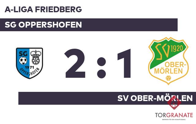Dennis Bellersheim stellte die Weichen für die SG Oppershofen auf Sieg, als er in Minute 37 mit dem 1:0 zur Stelle war. Einen Torerfolg in Halbzeit eins verbuchte lediglich der Gastgeber, womit man eine knappe Führung mit in die Kabinen nahm. In der 47. Minute erzielte Maksym Braslavskiy das 1:1 für den SV Ober-Mörlen. Ein später Treffer von Nick Bayer, der in der Schlussphase erfolgreich war (90.), bedeutete die Führung für die SG Oppershofen. Letzten Endes ging die SG Oppershofen im Duell mit dem SV Ober-Mörlen als Sieger hervor.