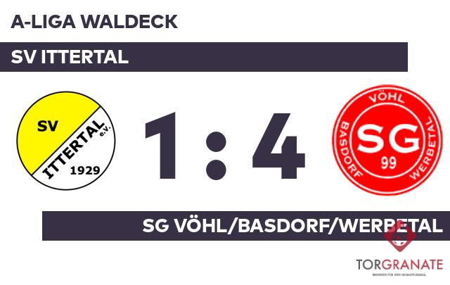 Beide Mannschaften starteten vorsichtig in das Spiel. Zu Torchancen gelangte in der Anfangsphase keine von beiden. Christofer Mixon schoss für Vöhl/Basdorf/Werbet. in der 18. Minute das erste Tor. Das 1:1 des SV Ittertal stellte Jan Wiesemann sicher (35.). Als manch einer bereits mit den Gedanken in der Halbzeit war, besorgte Sascha Schroeder auf Seiten der SG Vöhl/Basdorf/Werbetal das 2:1 (41.). Ohne dass sich am Stand noch etwas tat, schickte Schiedsrichter Lukas Irle (Bromskirchen) die Akteure in die Pause. Mixon schnürte mit seinem zweiten Treffer einen Doppelpack und brachte seine Mannschaft auf die Siegerstraße (64.). Jan-Eric Himmelmann überwand den gegnerischen Schlussmann zum 4:1 für Vöhl/Basdorf/Werbet. (73.). Am Ende hieß es für die Gäste: drei Punkte auf des Gegners Platz durch einen Auswärtserfolg beim SV Ittertal.