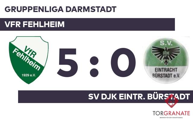 Für das 1:0 und 2:0 war Max Schwerdt verantwortlich. Der Akteur traf gleich zweimal ins Schwarze (19./44.). Mit der Führung für den VfR Fehlheim ging es in die Kabine. Die Heimmannschaft baute den Vorsprung mit der Hilfe des Gegners weiter aus: 3:0 für den Tabellenführer durch ein Eigentor des SV DJK Bürstadt in der 63. Minute. In der 69. Minute legte Schwerdt zum 4:0 zugunsten des VfR Fehlheim nach. Ab der 79. Minute bereicherte der für Percy Felix eingewechselte Dejan Huseinovic den VfR Fehlheim im Vorwärtsgang. Ricardo Zocco gelang in den Schlussminuten noch ein weiterer Treffer für den VfR Fehlheim (83.). Letztlich feierte der VfR Fehlheim gegen den SV DJK Eintr. Bürstadt nach einer überzeugenden Darbietung einen verdienten Heimsieg.