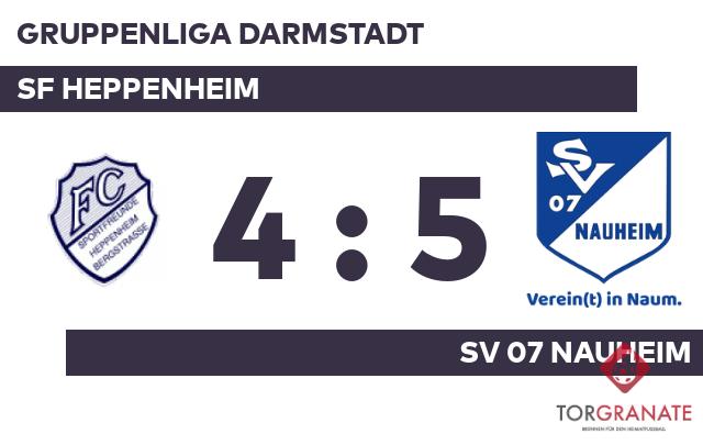 Yasin Kapucu brachte die SF Heppenheim in der 15. Minute ins Hintertreffen. Ilias Syah erhöhte den Vorsprung des SV 07 Nauheim nach 19 Minuten auf 2:0. Schad Bendiyan witterte seine Chance und schoss den Ball zum 1:2 für die SF Heppenheim ein (22.). Per Elfmeter erhöhte Kapucu in der 31. Minute seine Torausbeute an diesem Tag auf zwei Treffer – 3:1 für den SV 07 Nauheim. Innerhalb weniger Minuten trafen Ramzy Yahaya (41.) und Timo Fischer (45.). Damit bewies die SF Heppenheim nochmals die Durchschlagskraft der Offensive. Zum Seitenwechsel hatte keine Mannschaft die Oberhand gewonnen. Unentschieden lautete der Zwischenstand. Mit einem Wechsel – Yunus Güder kam für Simon Berhe – startete die SF Heppenheim in Durchgang zwei. Der Treffer zum 4:3 sicherte dem Gastgeber nicht nur die Führung – es war auch bereits der zweite von Yahaya in diesem Spiel (60.). Für die SF Heppenheim nahm das Match in der Schlussphase die bittere Wende. Okan Behcet Erdogan drehte den Spielstand mit einem Doppelpack (83./90.) und sicherte dem SV 07 Nauheim einen Last-Minute-Sieg. Letztlich nahm der SV 07 Nauheim gegen den direkten Abstiegskonkurrenten wichtige Punkte mit und trug einen Sieg davon.