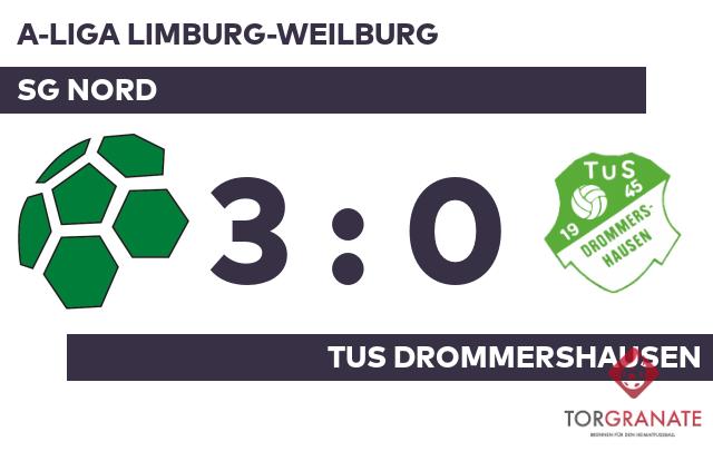 Torlos ging es nach dem Halbzeitpfiff in die Kabinen. Andrei Aurelian Moise brachte die SG Nord in der 50. Minute in Front. In der 77. Minute erhöhte Javad Tajik auf 2:0 für den Gastgeber. Mit dem 3:0 sicherte Moise dem Ligaprimus nicht nur den Sieg, sondern erzielte auch seinen zweiten Tagestreffer (85.). Am Schluss gewann die SG Nord gegen den TuS Drommershausen.