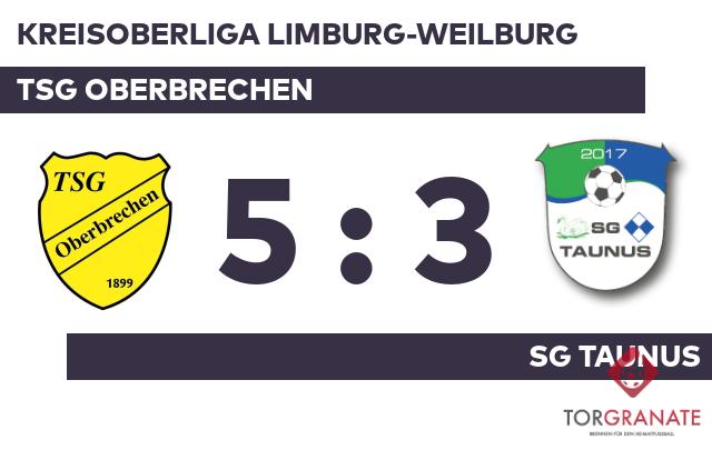 Steve Hönscher beförderte das Leder zum 1:0 der Gastgeber in die Maschen (32.). Wer glaubte, die SG Taunus sei geschockt, irrte. Maximilian Meuth machte unmittelbar nach dem Rückschlag den Ausgleich perfekt (36.). Zum Seitenwechsel hatte keine Mannschaft die Oberhand gewonnen. Unentschieden lautete der Zwischenstand. Mohammed Amin Al Mohammad brachte den Ball zum 2:1 zugunsten der TSG Oberbrechen über die Linie (56.). In der 66. Minute war Meuth mit dem Ausgleich zum 2:2 zur Stelle. Damit schoss er bereits seinen zweiten Treffer! Mit schnellen Toren von Jan Vincent Metternich (72.) und Jonas Kremer (75.) schlug die TSG Oberbrechen innerhalb kurzer Zeit gleich doppelt zu. Marcel Jung ließ sich in der 80. Minute nicht zweimal bitten und verwertete zum 3:4 für die SG Taunus. Die TSG Oberbrechen baute den Vorsprung mit der Hilfe des Gegners weiter aus: 5:3 für die TSG Oberbrechen durch ein Eigentor der SG Taunus in der 90. Minute. Am Schluss fuhr die TSG Oberbrechen gegen die SG Taunus auf eigenem Platz einen Sieg ein.