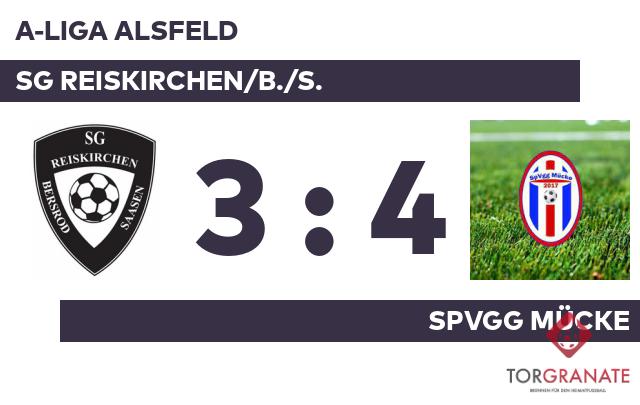 Die SG Reiskirchen/B./S. ging mit einem Elfmeter von Christian Kuhn in Führung (19.). Für das 2:0 des Reisk./Bers./Saasen zeichnete Niklas Frey verantwortlich (27.). Mit der Führung für die SG Reiskirchen/B./S. ging es in die Halbzeitpause. In der Pause stellte die SpVgg Mücke personell um: Per Doppelwechsel kamen Robin Zinkowski und Paul Semmler auf den Platz und ersetzten Lukas Engel und Tobias Müller. Sebastian Doering war es, der in der 50. Minute das Spielgerät im Gehäuse des Reisk./Bers./Saasen unterbrachte. Mit einem schnellen Doppelpack (55./60.) zum 3:2 schockte Jan-Marc Hofmann die SG Reiskirchen/B./S. und drehte das Spiel. Geschockt zeigte sich das Reisk./Bers./Saasen nicht. Nur wenig später war Robin Kaessmann mit dem Ausgleich zur Stelle (63.). Die SG Reiskirchen/B./S. kam nicht mehr ins Spiel zurück, Lukas Decher brachte die SpVgg Mücke sogar in Führung (70.). Mit dem Abpfiff des Referees Jürgen Müller (Rabenau) hatte das Reisk./Bers./Saasen das Polster der ersten Hälfte verspielt, sodass es letzten Endes nicht einmal für ein Unentschieden reichte.