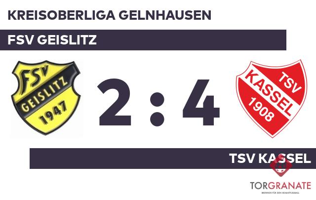 Zu Beginn der Begegnung neutralisierten sich beide Mannschaften so weit, dass sich keine von ihnen eine Torchance herausspielte. Nach nur 25 Minuten verließ Paul Kukula vom TSV Kassel das Feld, Stefan Kleinfelder kam in die Partie. Das 1:0 des TSV stellte Christian Schum sicher (29.). Aus der Ruhe ließ sich der FSV Geislitz nicht bringen. Alexander Heuser erzielte wenig später den Ausgleich (34.). Vor dem Seitenwechsel sorgte Kleinfelder mit seinem Treffer für eine kalte Dusche für die Geislitzer. Mit einem Tor Vorsprung für den TSV Kassel ging es für die beiden Teams in die Halbzeitpause. In der 68. Minute verwandelte Jeremy Korr einen Elfmeter zum 3:1 für die Kasseler. Der FSV Geislitz stellte in der 77. Minute mit einem Dreifachwechsel groß um und schickte Tobias Kolland, Maximilian Meyer und Sebastian Weber für Oliver Kanthak, Klaus Cela und Dirk Braune auf den Platz. Für ruhige Verhältnisse sorgte Schum, als er das 4:1 für den TSV Kassel besorgte (83.). Kurz vor dem Ende des Spiels nahmen die Gäste noch einen Doppelwechsel vor, sodass Elias Strauss und Torsten Schum für Kleinfelder und Rico Fingerhut weiterspielten (90.). Kurz vor Ultimo war noch Ismet Buelbuel zur Stelle und zeichnete für das zweite Tor des FSV Geislitz verantwortlich (90.). Nach Beendigung der zweiten Halbzeit hieß das Ergebnis 4:2 zugunsten des TSV Kassel.