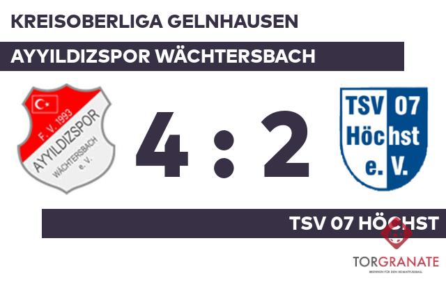 Ein Doppelpack brachte die Türken in eine komfortable Position: Samet Degermenci war gleich zweimal zur Stelle (13./16.). Haris Dudevic brachte das Heimteam in ruhiges Fahrwasser, indem er das 3:0 erzielte (34.). Der TSV 07 Höchst ließ zumindest bis zur Pause kein weiteres Tor zu und so blieb es bis zum Halbzeitpfiff beim deutlichen Vorsprung des Ayyildizspor Wächtersbach. Das Ayy. Wächtersbach konnte mit dem ersten Durchgang sehr zufrieden sein. Trotzdem gab es Veränderungen beim Ayyildizspor Wächtersbach. Cueneyt Bayram ersetzte Mustafa Bayram, der nun schon vorzeitig Feierabend machte. Janis Häuser schoss die Kugel zum 1:3 für den TSV 07 Höchst über die Linie (50.). Marius Demar traf zum 2:3 zugunsten des TSV 07 (70.). Mit dem 4:2 sicherte Dudevic dem Ayy. Wächtersbach nicht nur den Sieg, sondern erzielte auch seinen zweiten Tagestreffer (74.). Unter dem Strich verbuchte das Ayyildizspor Wächtersbach gegen den TSV 07 Höchst einen 4:2-Sieg.