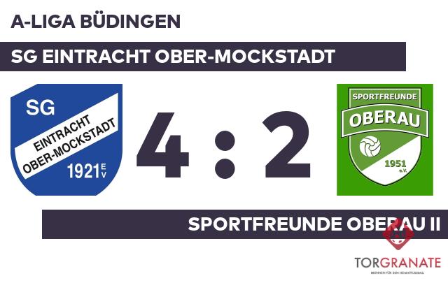 Tom Lucas Koch brachte die SG Eintracht Ober-Mockstadt in der 15. Spielminute in Führung. Sebastian Hess nutzte die Chance für den Gastgeber und beförderte in der 19. Minute das Leder zum 2:0 ins Netz. Bei den Sportfreunde Oberau II kam Endrik Gjoshi für Andreas Eliya ins Spiel und sollte fortan für neue Impulse sorgen (29.). Mit der Führung für die SG Ober-Mockstadt ging es in die Kabine. In Durchgang zwei lief Florian Krieg anstelle von Samuel Redae für die Sportfr. Oberau II auf. Anstelle von Dennis Blachnik war nach Wiederbeginn Luca Jannis Foltes für die SG Eintracht Ober-Mockstadt im Spiel. Gjoshi verkürzte für die Sportfreunde Oberau II später in der 56. Minute auf 1:2. Koch schnürte mit seinem zweiten Treffer einen Doppelpack und brachte seine Mannschaft auf die Siegerstraße (66.). Für das zweite Tor der Sportfr. Oberau II war David Juschzak verantwortlich, der in der 84. Minute das 2:3 besorgte. Ehe der Abpfiff ertönte, war es Foltes, der das 4:2 aus Sicht der SG Ober-Mockstadt perfekt machte (90.). Schlussendlich verbuchte die SG Eintracht Ober-Mockstadt gegen die Sportfreunde Oberau II einen überzeugenden Heimerfolg.