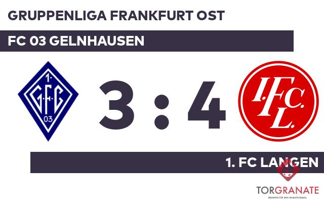 Max Werner brachte den FCL in der zehnten Spielminute in Führung. Geschockt zeigte sich der FC 03 Gelnhausen nicht. Nur wenig später war Leon Bräuer mit dem Ausgleich zur Stelle (15.). Der Treffer zum 2:1 sicherte dem 1. FC Langen nicht nur die Führung – es war auch bereits der zweite von Werner in diesem Spiel (18.). Nach nur 26 Minuten verließ Justin Langhammer vom FC 03 Gelnhausen das Feld, Patrick Koch kam in die Partie. Für den nächsten Erfolgsmoment des 1. FC Langen sorgte Fabio Mola (34.), ehe Baba Mouhaman das 4:1 markierte (45.). Das überzeugende Auftreten der Langener fand Ausdruck in einer klaren Halbzeitführung. In der Pause wechselte der FC 03 Gelnhausen den nominellen Stürmer Antonio Sbano für Jeremy Amako ein. Kahraman Damar schoss die Kugel zum 2:4 für den FC 03 über die Linie (62.). Durch einen von Dennis Westenberger verwandelten Elfmeter gelang den Gelnhäuser in der 80. Minute der 3:4-Anschlusstreffer. Ab der 75. Minute bereicherte der für k.A. k.A. eingewechselte Dzejlan Hamidovic den GFC im Vorwärtsgang. Die Gastgeber steigerten sich nach desolatem Beginn im Laufe der Partie. Unterm Strich erwies sich der Rückstand jedoch als zu groß, als dass der FC 03 Gelnhausen etwas hätte mitnehmen können.