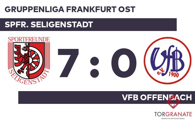 Der VfB Offenbach geriet schon in der zehnten Minute in Rückstand, als Marcel Fleckenstein das schnelle 1:0 für die Spfr. Seligenstadt erzielte. Bereits in der 13. Minute erhöhte Philipp Traut den Vorsprung der Spfr. Seligenstadt. Doppelpack für die SFS: Nach seinem ersten Tor (32.) markierte Muhammed Kayaroglu wenig später seinen zweiten Treffer (35.). Der dominante Vortrag der Seligenstädter im ersten Spielabschnitt zeigte sich an der deutlichen Halbzeitführung. Beim VfB Offenbach kam zu Beginn der zweiten Hälfte Josip Ivkovic für Dominik Röhl in die Partie. Für die Gäste war es ein Tag zum Vergessen. Kevin Knecht (54.), Fleckenstein (56.) und Patrick Hofmann (60.) machten das Unheil perfekt. In der 60. Minute wechselte die Spfr. Seligenstadt Julian Purcell für Knecht ein, einen nominellen Verteidiger für einen anderen. In der 66. Minute stellte das Heimteam personell um: Per Doppelwechsel kamen Dominik Marton und Ghoerghe Alexandru Strechie auf den Platz und ersetzten Fleckenstein und Jan Hertrich. Am Ende fuhr die Spfr. Seligenstadt einen deutlichen Sieg ein. Dabei demonstrierte die Spfr. Seligenstadt bereits in Hälfte eins großes Leistungsvermögen, als man den VfB Offenbach in Grund und Boden spielte.