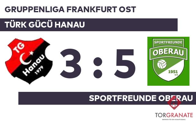 Halil Korkmaz schoss in der 14. Minute vom Elfmeterpunkt das erste Tor des Spiels für Türk Gücü. Kevin Kuhl schoss für die Sportfreunde Oberau in der 23. Minute das erste Tor. Die nächsten beiden Treffer waren einem Mann vorbehalten: Paul Kipper schnürte einen Doppelpack (31./43.), sodass die Gäste fortan mit 3:1 führten. Mit einem Wechsel – Ferdi Arslan kam für Hasan Moustafa – startete Türk Gücü Hanau in Durchgang zwei. Der Schiedsrichter schickte schließlich beide Mannschaften ohne weitere Änderung am Spielstand in die Kabinen. Onur Bulut war zur Stelle und markierte das 2:3 von Türk Gücü Hanau (60.). Kuhl beseitigte mit seinen Toren (62./69.) die letzten Zweifel am Sieg der Sportfreunde Oberau. Arslan schoss die Kugel zum 3:5 für Türk Gücü Hanau über die Linie (75.). Der Referee beendete das Spiel und TG steckt weiter in der Krise. Im Kellerduell gegen die Sportfreunde Oberau kam man unter die Räder.