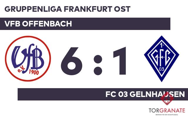 Serhat Gumus brachte dem VfB Offenbach nach vier Minuten die 1:0-Führung. Bereits in der 15. Minute erhöhte Gabriel Seebald den Vorsprung der Gastgeber. Nach nur 25 Minuten verließ Karim Abuhani vom FC 03 Gelnhausen das Feld, Benjamin Bulone kam in die Partie. Das 1:2 des FC 03 bejubelte Kahraman Damar (26.). Zwei schnelle Treffer von Seebald (43.) und Imran Gulzar (45.) sorgten für die Vorentscheidung zugunsten des VfB Offenbach. Der tonangebende Stil des VfB Offenbach spiegelte sich in einer klaren Pausenführung wider. Für den nächsten Erfolgsmoment des VfB Offenbach sorgte Dominik Röhl (49.), ehe Virgil Mihai das 6:1 markierte (70.). Am Ende fuhr der VfB Offenbach einen deutlichen Sieg ein. Dabei demonstrierte der VfB Offenbach bereits in Hälfte eins großes Leistungsvermögen, als man den FC 03 Gelnhausen in Grund und Boden spielte.