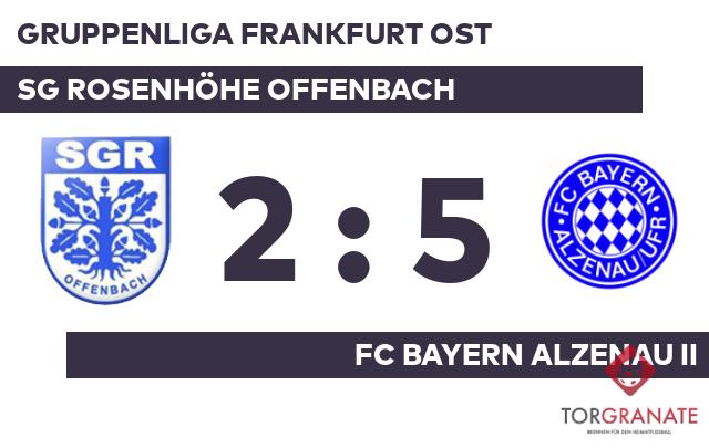 Leandro Baumann brachte die SG Rosenhöhe Offenbach in der achten Minute ins Hintertreffen. Michel Tobias Feuchter versenkte den Ball in der 18. Minute im Netz des FC Bayern Alzenau II. Sadate Moussa stellte die Weichen für den Gast auf Sieg, als er in Minute 37 mit dem 2:1 zur Stelle war. Zum psychologisch ungünstigen Zeitpunkt vor der Halbzeit (44.) schoss Emrecan Heptazeler einen weiteren Treffer für den FC Bayern Alzenau II. Es waren die Gäste, die zur Pause eine Führung ihr Eigen nannten. Mit einem Wechsel – Jordy Zola kam für Feuchter – startete die SG Rosenhöhe OF in Durchgang zwei. Für das zweite Tor der SGR war Robin Weber verantwortlich, der in der 60. Minute das 2:3 besorgte. Für den nächsten Erfolgsmoment des FC Bayern Alzenau II sorgte Canel Burcu (64.), ehe Moussa das 5:2 markierte (75.). Mit dem Schlusspfiff durch den Unparteiischen Nicolo Fahrenholz (Bensheim) gewann der FC Bayern Alzenau II gegen die SG Rosenhöhe Offenbach.