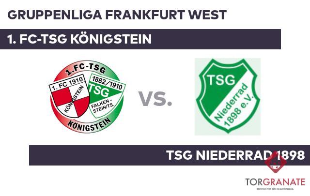 Beleg für das durchwachsene Heimabschneiden des 1. FC-TSG Königstein sind vier Punkte aus drei Spielen. Hier spielen zwei enge Konkurrenten gegeneinander. Die TSG Niederrad 1898 belegt mit neun Punkten den achten Platz. Der 1. FC-TSG Königstein liegt aber mit nur zwei Punkten weniger auf Platz elf knapp dahinter und kann mit einem Sieg an der TSG Niederrad 1898 vorbeiziehen.