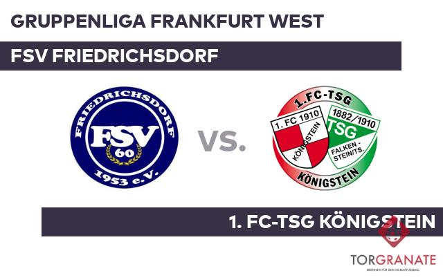 Insbesondere den Angriff der Königsteiner gilt es für den FSV Friedrichsdorf in Schach zu halten. Durchschnittlich lässt der 1. FC-TSG Königstein den Ball mehr als dreimal pro Partie im Netz zappeln. Angesichts der guten Heimstatistik (3-1-0) dürfte der FSV Friedrichsdorf selbstbewusst antreten. Das Heimteam hat den 1. FC-TSG Königstein im Nacken. Das FC-TSG liegt im Klassement nur zwei Punkte hinter dem FSV Friedrichsdorf.
