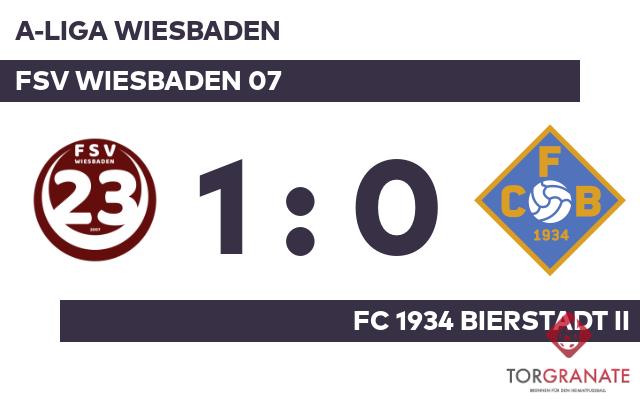 Nach den ersten 45 Minuten ging es für das Heimteam und den FC Bierstadt II ohne Torerfolg in die Kabinen. In Durchgang zwei lief Airidas Rasymas anstelle von Eser Durbak für den FSV Wiesbaden 07 auf. Für das erste Tor sorgte Rasymas. In der 54. Minute traf der Spieler des FSV Wiesbaden ins Schwarze. Am Ende machte ein Tor den Unterschied zwischen dem FSV Wiesbaden 07 und dem FC 1934 Bierstadt II aus.