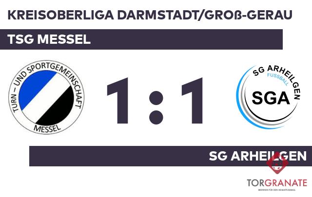 Gleich zu Spielbeginn traf die SG Arheilgen zur frühen Führung (3.). In der 16. Minute verwandelte Oliver Eric Hoehne einen Elfmeter zum 1:1 für die TSG Messel. Nach nur 29 Minuten verließ Rafael Dominik Holder von der Heimmannschaft das Feld, Markus Jakobi kam in die Partie. Bis zum Pausenpfiff blieb der Stand unverändert. Als der Unparteiische das Spiel beendete, blieb der folgende Eindruck: Einen offenen Schlagabtausch lieferten sich beide Teams nach dem Seitenwechsel wahrlich nicht, sodass es am Ende beim Unentschieden blieb.