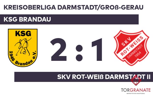 Rafael Sanchez Lazaro brachte die KSG Brandau in der 19. Minute nach vorn. Nach nur 29 Minuten verließ Tobin Kauth vom SKV Rot-Weiß Darmstadt II das Feld, Marius Schmitt kam in die Partie. Ein Tor mehr für die KSG Brandau machte den Unterschied zur Pause zwischen den beiden Mannschaften aus. Zum Seitenwechsel ersetzte Luca Karrer vom SKV RW Darmstadt II seinen Teamkameraden Ben Schneider. Das 1:1 der Gäste bejubelte Fynn Luke Kablitz (57.). Dennis Hoffmann, der von der Bank für Kevin Bruns kam, sollte für neue Impulse bei der KSG Brandau sorgen (64.). Hoffmann brachte dem Gastgeber nach 67 Minuten die 2:1-Führung. Am Ende behielt die KSG Brandau gegen den SKV Rot-Weiß Darmstadt II die Oberhand.