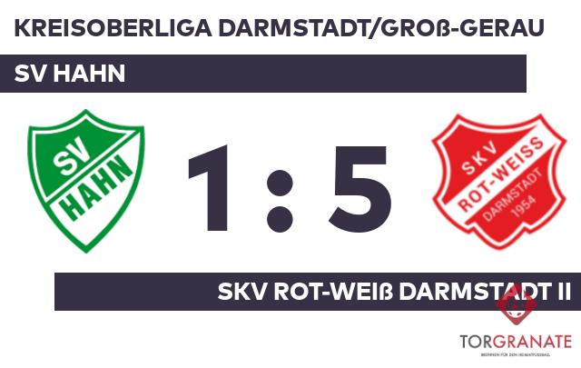 Pascal Stork brachte den SKV Rot-Weiß Darmstadt II in der 19. Minute ins Hintertreffen. Fabio Lombardi schockte den SV Hahn und drehte die Partie mit seinem Doppelpack für den SKV RW Darmstadt II (32./41.). Zum psychologisch ungünstigen Zeitpunkt vor der Halbzeit (45.) schoss Nebil Abdulhay Mustefa einen weiteren Treffer für den SKV Rot-Weiß Darmstadt II. Es waren die Gäste, die zur Pause eine Führung ihr Eigen nannten. Für das 4:1 des SKV RW Darmstadt II sorgte Tobin Kauth, der in Minute 76 zur Stelle war. Markus Hornung besorgte in der Schlussphase schließlich den fünften Treffer für den Gast (82.). Schlussendlich reklamierte der SKV Rot-Weiß Darmstadt II einen Sieg in der Fremde für sich und wies den SV Hahn in die Schranken.