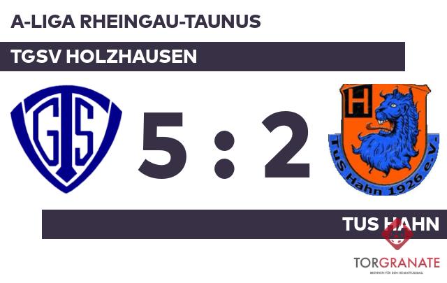 Ein frühes Ende hatte das Spiel für Simon Falkenstein vom TuS Hahn, der in der zehnten Minute vom Platz musste und von Max Bodenheimer ersetzt wurde. Nach den ersten 45 Minuten ging es für den TGSV Holzhausen und den TuS Hahn ohne Torerfolg in die Kabinen. Beim TGSV Holzhausen kam zu Beginn der zweiten Hälfte Marlon Preis für Tobias Bender in die Partie. Malik Minor brachte die Heimmannschaft in der 54. Minute nach vorn. Wer glaubte, der TuS Hahn sei geschockt, irrte. Christian Schleihauf machte unmittelbar nach dem Rückschlag den Ausgleich perfekt (55.). Justin Nils Neu trug sich in der 61. Spielminute in die Torschützenliste ein. Der TGSV Holzhausen drehte auf, Alf Mintzel (65.), Daniel Busch (72.) und Minor (75.) markierten innerhalb weniger Minuten die Tore zum 5:1 und ließen den TuS Hahn dabei ziemlich alt aussehen. Mit dem Treffer zum 2:5 in der 89. Minute machte Schleihauf zwar seinen Doppelpack perfekt – der Rückstand zum TGSV Holzhausen war jedoch weiterhin groß. Am Ende stand der TGSV Holzhausen als Sieger da und behielt die drei Punkte verdient zu Hause.