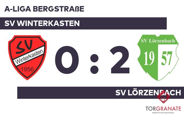 In der Anfangsphase schaffte es keines der beiden Teams, sich eine Chance zu erarbeiten. Nach nur 25 Minuten verließ Robin Adler vom SV Lörzenbach das Feld, Alexander Ripper kam in die Partie. Die erste Halbzeit endete ohne ein zählbares Ereignis für beide Mannschaften. In Durchgang zwei lief Jonas Fetsch anstelle von Yannick Schwarz für den SV Lörzenbach auf. Anstelle von Fabian Kopp war nach Wiederbeginn Christian Daum für den SV Winterkasten im Spiel. Johannes Arras, der von der Bank für Nikolaus Kilian kam, sollte für neue Impulse beim SV Lörzenbach sorgen (50.). Arras brach für den Ligaprimus den Bann und markierte in der 64. Minute die Führung. Maximilian Jöst stellte wenige Minuten vor dem Schlusspfiff den Stand von 2:0 für den SV Lörzenbach her (90.). Mit Ablauf der Spielzeit schlug der SV Lörzenbach den SV Winterkasten 2:0.