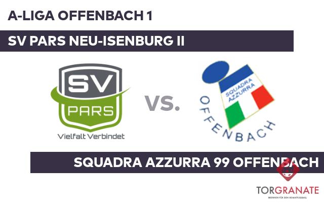 Die Hintermannschaft des Pars Neu-Isenburg II ist gewarnt, im Schnitt trifft die Offensivabteilung der Squadra Azzurra OF mehr als zweimal pro Spiel ins Schwarze. Mit 17 Punkten belegt der SV Pars Neu-Isenburg II den achten Tabellenplatz. Damit ist man der Squadra Azzurra 99 Offenbach ganz dicht auf den Fersen, denn die Squadra Azzurra OF hat mit 18 Punkten nur einen Zähler mehr auf dem Konto und steht auf dem sechsten Platz. Beide Teams fuhren in dieser Saison bisher fünf Siege ein.