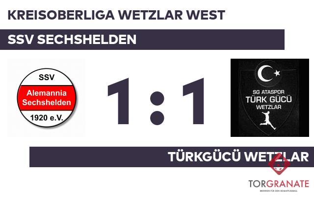 In der Anfangsphase schaffte es keines der beiden Teams, sich eine Chance zu erarbeiten. Muhammed Akpinar musste nach nur 18 Minuten vom Platz, für ihn spielte Mossawar Barakzai weiter. Nach nur 30 Minuten verließ Faruk Bulutlar vom SSV Sechshelden das Feld, Jan Alexander Hild kam in die Partie. Der Unparteiische setzte mit dem Halbzeitpfiff dem torlosen Treiben auf dem Feld vorläufig ein Ende. Anstelle von Hild war nach Wiederbeginn Simon Stiebing für den SSV Sechshelden im Spiel. Ahmet Muhtar Akillar war zur Stelle und markierte das 1:0 der Türkgücü Wetzlar (63.). Für den Gleichstand, der kurz vor dem Ende zustande kam, zeichnete Hüdaverdi Kavak mit seinem Treffer aus der 90. Minute verantwortlich. Am Ende stand es zwischen dem SSV Sechshelden und der Türkgücü Wetzlar pari.