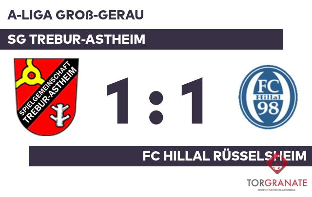 Bilal Benali machte in der 28. Minute das 1:0 des Tabellenführers perfekt. Bis zur Pause fiel kein weiteres Tor, sodass es schließlich mit unverändertem Ergebnis in die Kabinen ging. Für den Gleichstand, der kurz vor dem Ende zustande kam, zeichnete Lukas Behnke mit seinem Treffer aus der 86. Minute verantwortlich. Letztlich gingen die SG Trebur-Astheim und Hillal Rüsselsheim mit jeweils einem Punkt auseinander.