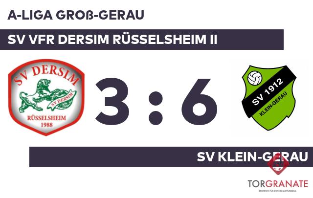 Dersim Rüsselsh. II erwischte einen Blitzstart ins Spiel. Baris Bulut traf in der sechsten Minute zur frühen Führung. Das 1:1 des SV Klein-Gerau bejubelte Michael Motschko (31.). Maxim Weichhaus brachte dem Gast nach 39 Minuten die 2:1-Führung. Der SV Klein-Gerau führte zur Halbzeit knapp mit einem Tor Vorsprung. Mesut Koyuncu ließ sich in der 49. Minute nicht zweimal bitten und verwertete zum 2:2 für den SV VFR Dersim Rüsselsheim II. Emre Kanmaz stellte die Weichen für den SV Klein-Gerau auf Sieg, als er in Minute 58 mit dem 3:2 zur Stelle war. Die passende Antwort hatte Dersim Kaygusuz parat, als er in der 61. Minute zum Ausgleich traf. Der SV Klein-Gerau drängte im Verlauf auf die Entscheidung – Salvatore Aiuto (72.), Tim Ott (83.) und Rahman Paylan (85.) machten Dersim Rüsselsh. II den Garaus. Als Schiedsrichter Diego Dossena (Offenbach am Main) die Begegnung beim Stand von 6:3 letztlich abpfiff, hatte der SV Klein-Gerau die drei Zähler unter Dach und Fach.