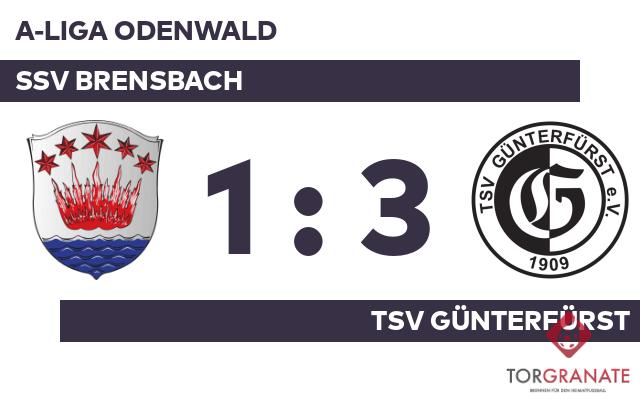 Nach nur 27 Minuten verließ Jannik Orth von der SSV Brensbach das Feld, Tim Spinner kam in die Partie. In der 35. Minute brachte Pay Feldmann den Ball im Netz der Gastgeber unter. Der TSV Günterfürst hatte zur Pause eine knappe Führung auf dem Zettel stehen. In Durchgang zwei lief Tobias Hastert anstelle von Robin Mueller für den Gast auf. Matthias Hallstein erhöhte für den TSV Günterfürst auf 2:0 (51.). Bei der SSV Brensbach kam Robin Schmid für Merlin Lampert ins Spiel und sollte fortan für neue Impulse sorgen (67.). Der dritte Streich des TSV Günterfürst war Kim Naas vorbehalten (81.). Kurz vor Ultimo war noch Schmid zur Stelle und zeichnete für das erste Tor der SSV Brensbach verantwortlich (87.). Am Ende verbuchte der TSV Günterfürst gegen die SSV Brensbach die maximale Punkteausbeute.