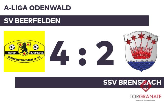 Kaum war das Spiel angepfiffen, lag das Heimteam bereits in Front. Tim Löffler markierte in der zweiten Minute die Führung. Zum psychologisch wichtigen Zeitpunkt kurz vor der Halbzeit (44.) traf Lukas Willmeroth zum Ausgleich für die SSV Brensbach. Zur Halbzeit war die Partie noch vollkommen offen. Remis lautete das Zwischenresultat. Für das zweite Tor des SV Beerfelden war Yannic Hartmann verantwortlich, der in der 47. Minute das 2:1 besorgte. Wer glaubte, die SSV Brensbach sei geschockt, irrte. Merlin Lampert machte unmittelbar nach dem Rückschlag den Ausgleich perfekt (49.). Robin Hemberger machte in der 73. Minute das 3:2 des SV Beerfelden perfekt. Mit dem 4:2 sicherte Löffler dem SV Beerfelden nicht nur den Sieg, sondern erzielte auch seinen zweiten Tagestreffer (84.). Als Schiedsrichter Jürgen Bruch (Heppenheim (Bergstraße)) die Partie abpfiff, reklamierte der SV Beerfelden schließlich einen 4:2-Heimsieg für sich.