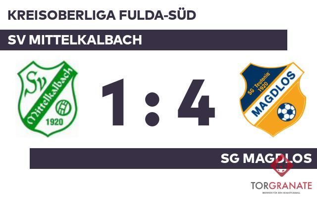 Nikolai Förster trug sich in der 30. Spielminute in die Torschützenliste ein. Mario Hartmann machte in der 33. Minute das 2:0 der SG Magdlos perfekt. In der 36. Minute legte Leander Auth zum 3:0 zugunsten der Teutonia nach. Der tonangebende Stil der Teutonen spiegelte sich in einer klaren Pausenführung wider. Maxim Koch beförderte das Leder zum 1:3 des SV Mittelkalbach über die Linie (46.). Mit dem 4:1 sicherte Förster der SG Magdlos nicht nur den Sieg, sondern erzielte auch seinen zweiten Tagestreffer (68.). Letztlich fuhr die SGM einen souveränen Erfolg ein, dessen Grundstein im ersten Spielabschnitt gelegt worden war.